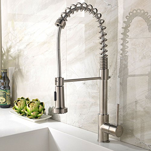 mode : Shaco Best Single Handle Single Lever Stainless Steel Spring Pull Out Sprayer Spiral Kitchen Faucets,Brushed Nickel